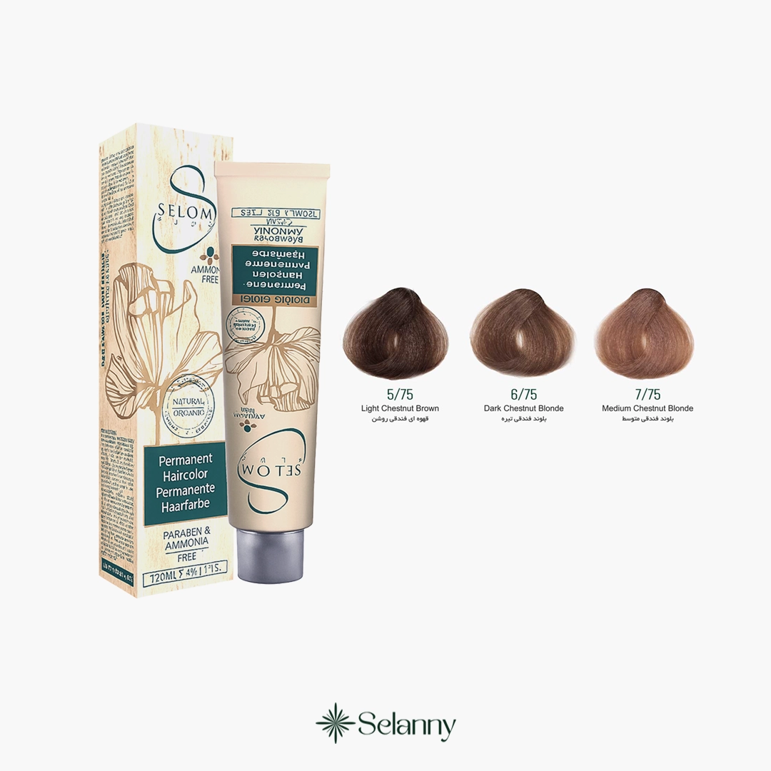 اگر دنبال رنگ بلوند شیک و خوشکیفیت هستی که بوی تند آمونیاک نداشته باشد و بافت مو را نرم نگه دارد، رنگ مو سلوم سری فندقی «Selom Plus Chestnut» دقیقا همان است. ترکیب کراتین طبیعی و روغنهای ارگانیک، به درخشندگی و لطافت مو کمک میکند و بهدلیل حذف آمونیاک، سولفات و پارابن، تحریک پوست سر به حداقل میرسد. دوام پیگمنتها بالاست و برای پوشش سفیدیها هم عملکرد خوبی دارد. این سری در طیف گستردهای از پایههای طبیعی عرضه شده و برای استفاده حرفهای یا خانگی مناسب است. ساخت/فرمولاسیون آلمان.